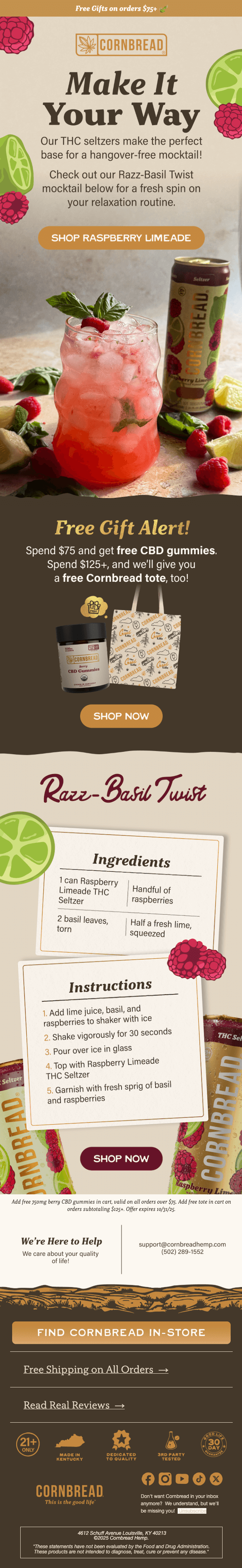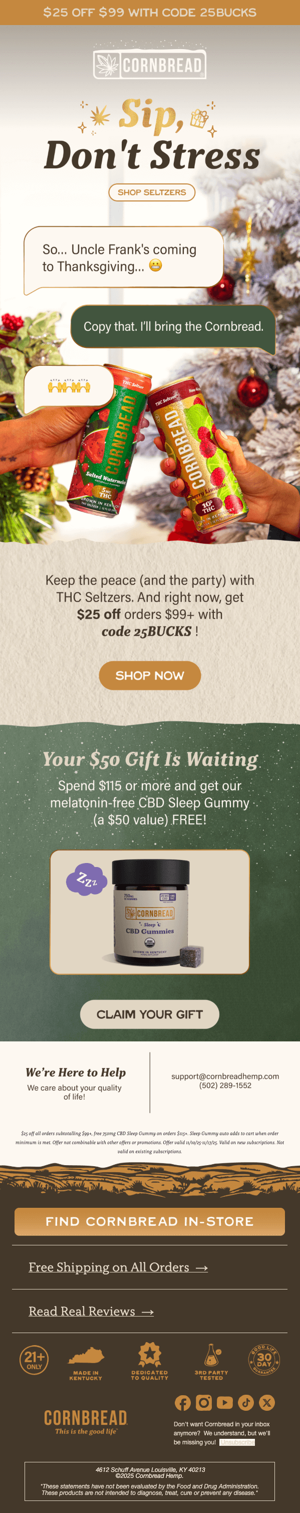 Look at Cornbread’s “Sip, Don’t Stress” email.