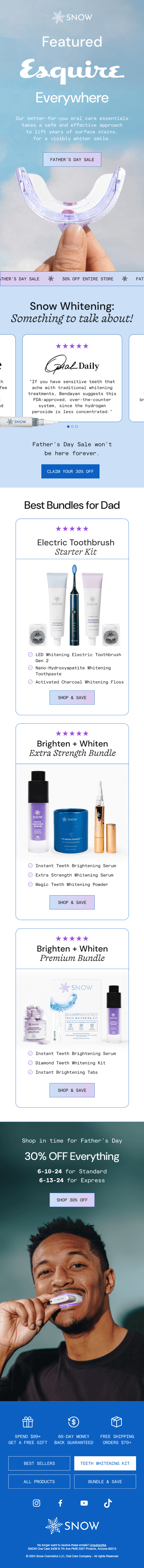 Snow’s Father’s Day email leads with authority and prestige.