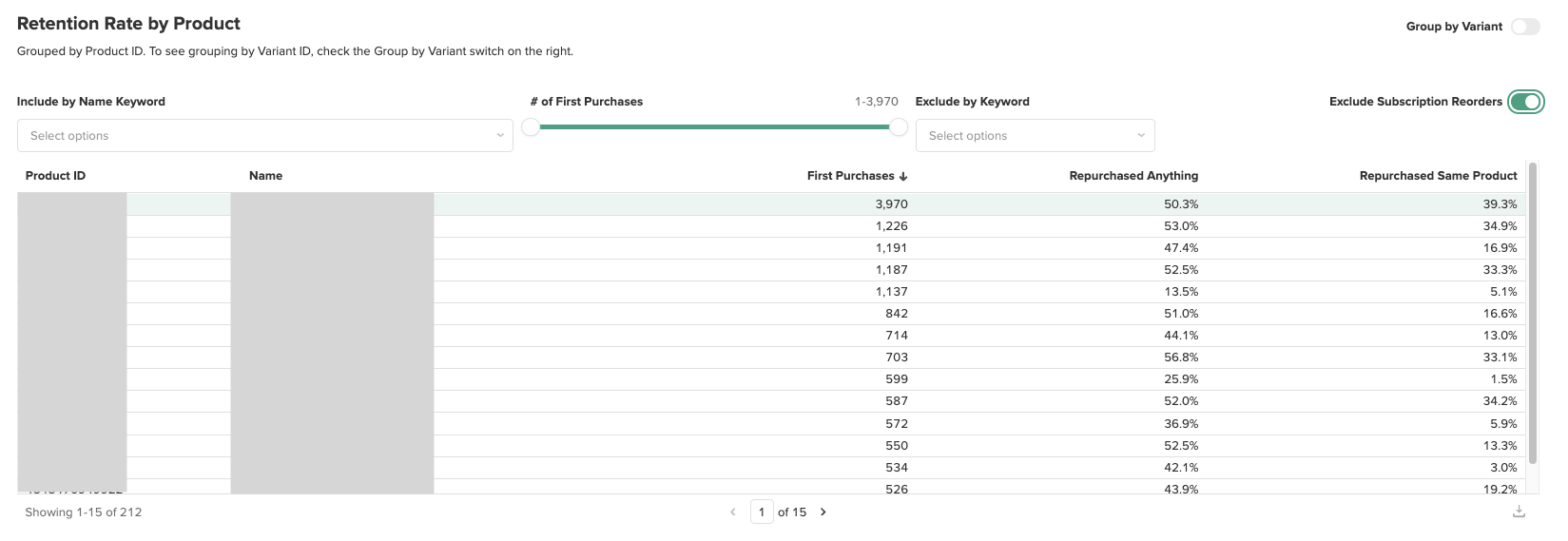 This instantly tells you which first-purchase products actually create repeat behavior.