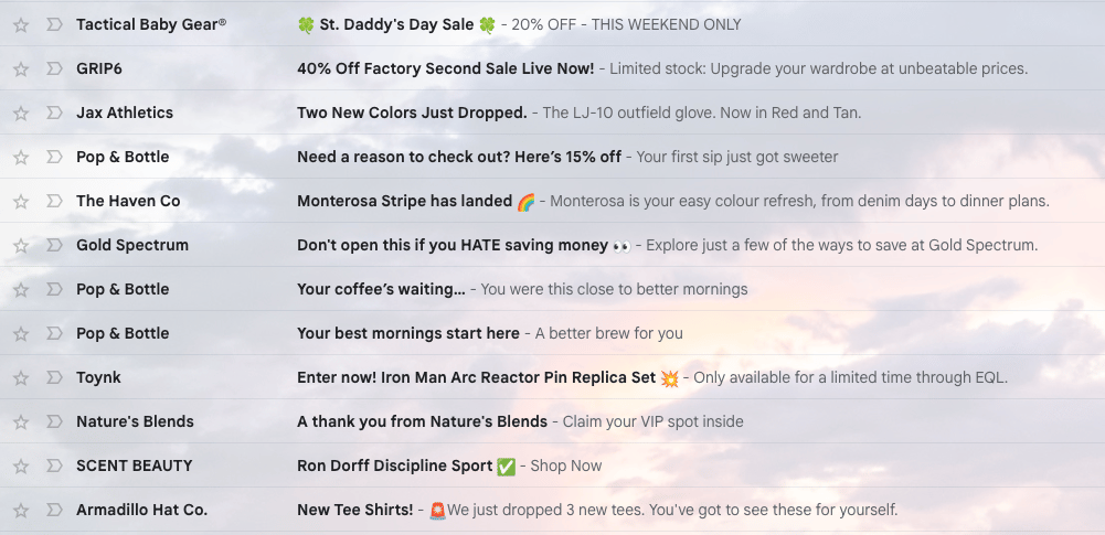 Here is the spam folder of just one inbox we use to monitor email placement for clients and other DTC brands.